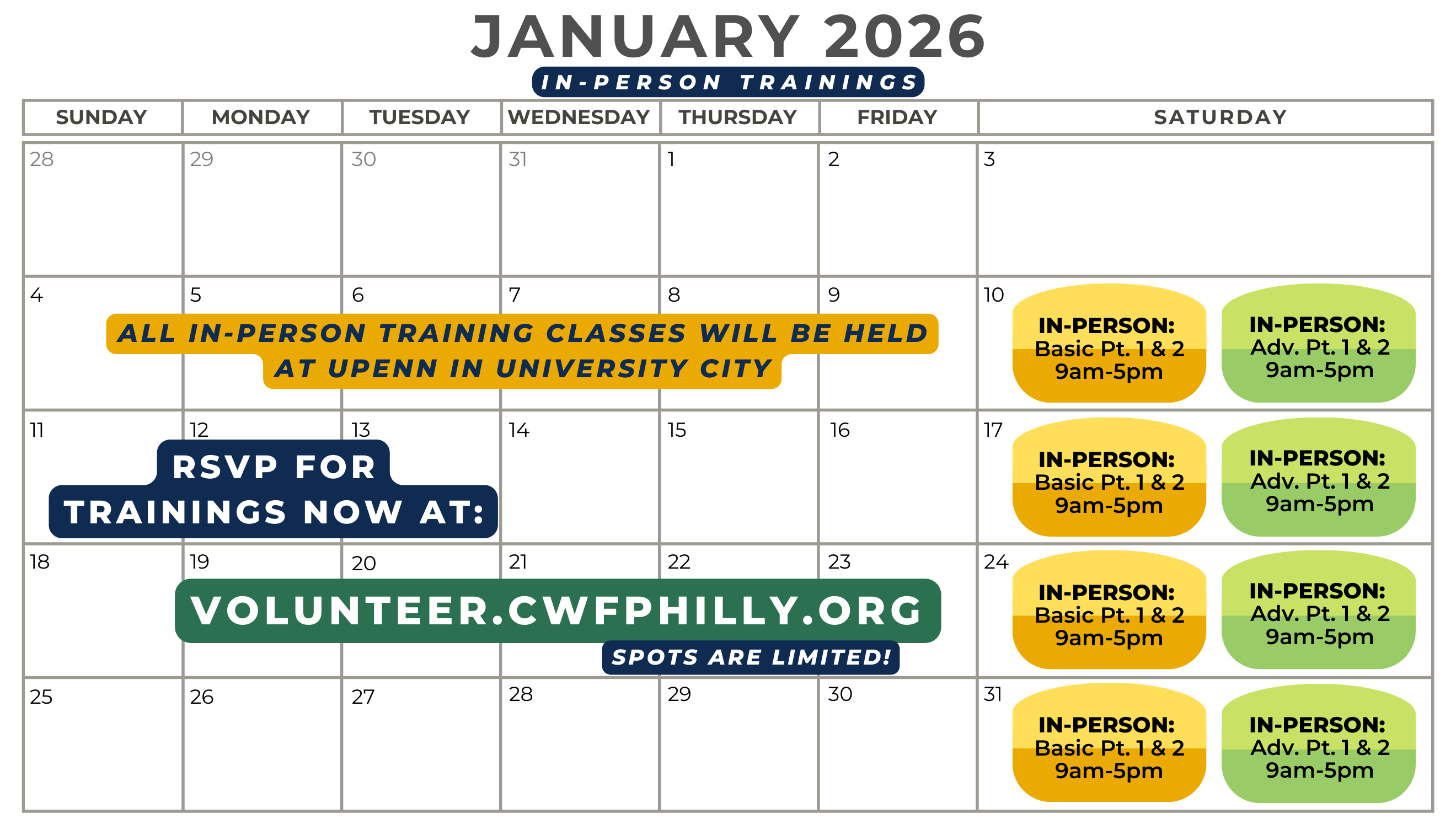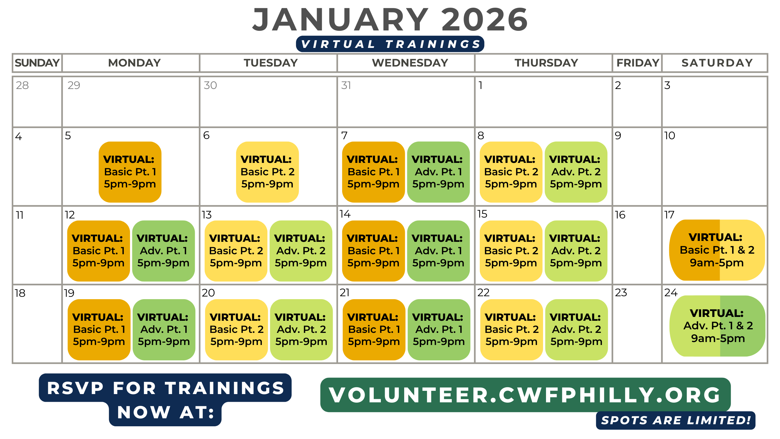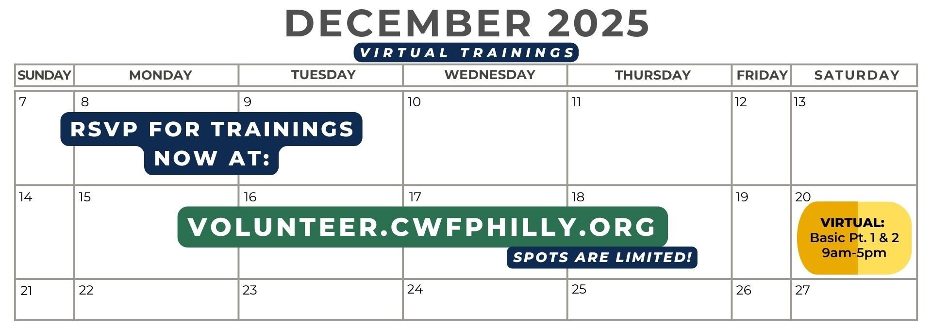 Virtual Volunteer Orientations will take place in mid-January. Keep an eye on your email for dates/times!